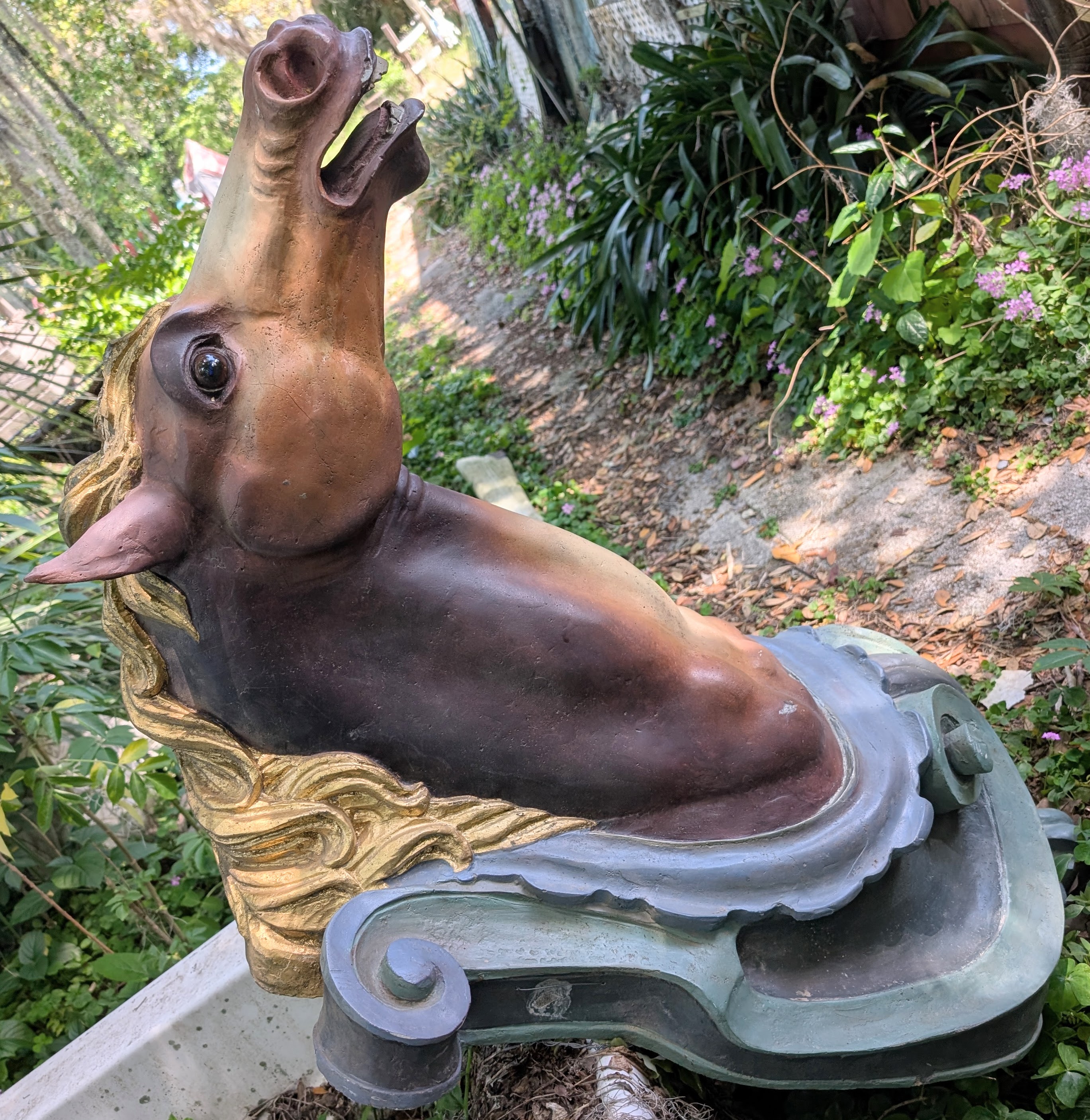 This carousel horse head is from a rounding board, not sure of the style or who made this one.